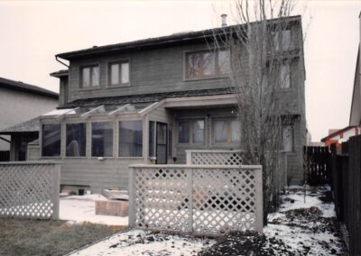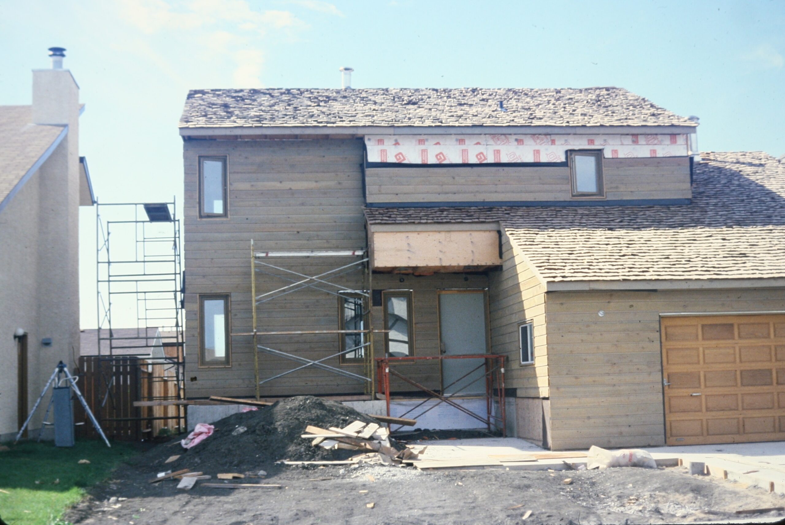 The house on Mahony Crescent was more than just Renovation. In what was supposed to be a lull between jobs, Brian designed the house. However, none of the local builders were willing to build it – the design was too weird, using cantilevers and including strange “environmental” concepts. Brian ended up recruiting family to help him build the house. That came with its own challenges. From his father in law who liked to start bright and early in the morning, to his brother and sister-in-law who would work late at night, Brian was kept busy almost around the clock. Grayden could sometimes be kept occupied with his miniature hammer and a can of nails – until he found a “hard nail” (eg, one that actually hit a joist instead of just the plywood) – but at other times, when asked to run an errand, Grayden would stress everyone by simply leaning out from the second floor structure to shout the message down. Brian was afraid Grayden would fall off. In the end, it was Brian that fell off the house. Twice. The most dramatic saw him fall while caulking some of the highest windows inside the house, through a missing flight of stairs, through another (not missing) flight of stairs and into the basement. The trip to the hospital and the stitches received were viewed as a distraction, with Brian returning to the construction later that night.